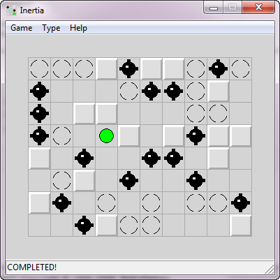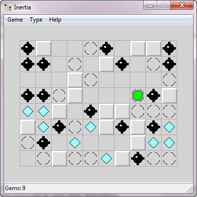 Inertia offers a unique twist on classic sliding-puzzle mechanics by introducing the challenge of momentum. Players control a green ball that glides across the grid in horizontal, vertical, or diagonal directions, and once it’s set in motion, it won’t stop until it encounters a barrier. This mechanic forces you to plan each move carefully, as a mistimed slide can send you hurtling past gems or, worse, straight into a mine.