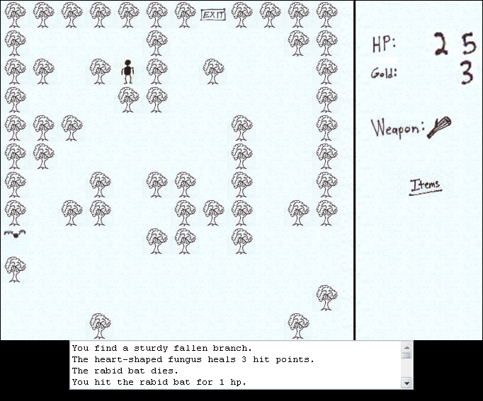 The tile-based environments lean into classic roguelike sensibilities, with repeating floor patterns, color-coded walls, and occasional decorative flourishes—like glowing mushrooms or dripping stalactites—that break up the monotony. Though simple, the flashing “EXIT” sign and occasional spell effect animations ensure you’re never questioning where to go or when an item takes effect.