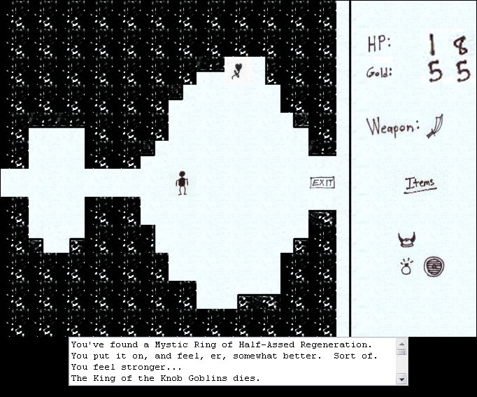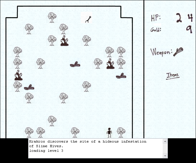 Krakrox the Barbarian offers a deceptively simple control scheme built around tile-based movement and bump-to-attack combat. Using the numeric keypad, you guide Krakrox across each grid-aligned level, carefully positioning him to collide with Knob Goblins, slimes, and other absurdly named foes. This bump-slash system keeps encounters swift and requires little more than timing and spatial awareness—perfect for pick-up-and-play sessions or marathon sessions alike.