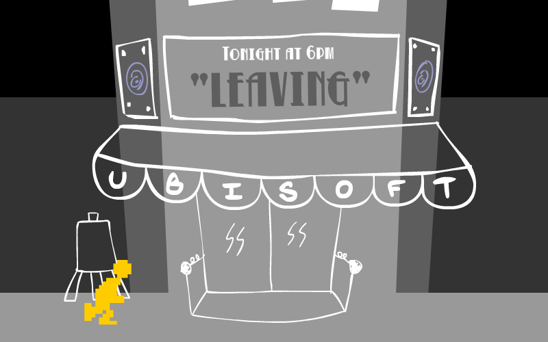 Visually, Leaving adopts a minimalist aesthetic that reinforces its contemplative tone. The protagonist’s vibrant yellow silhouette stands out sharply against the muted, often monochromatic backgrounds, ensuring clarity of movement and immediate recognition on every screen. This stylistic choice also mirrors the idea of an individual standing out against the corporate backdrop he’s about to leave behind.