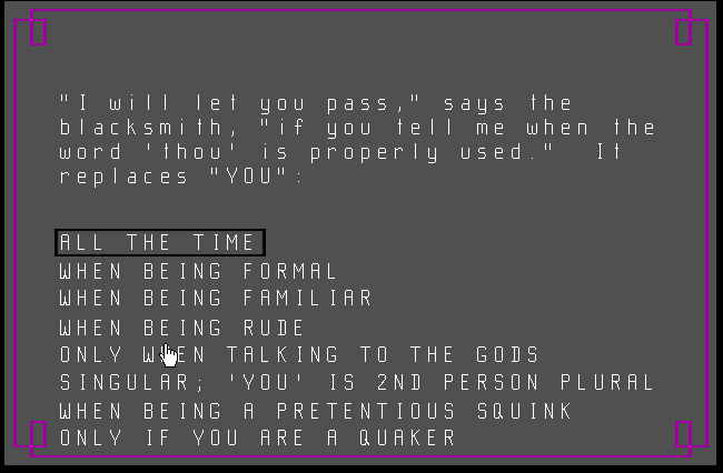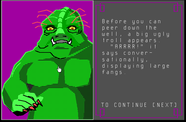 While the original MadMaze on Prodigy employed NAPLPS line art and palette shifts, MadMaze-II reimagines the corridors in crisp, hand-drawn pixel style. Textures are richer, with subtle lighting effects that hint at unseen depths beyond the walls. Each junction features a distinct color scheme—from moss-green stonework near the village entrance to the dusky purples and reds that herald your approach to the Castle Perilous.
