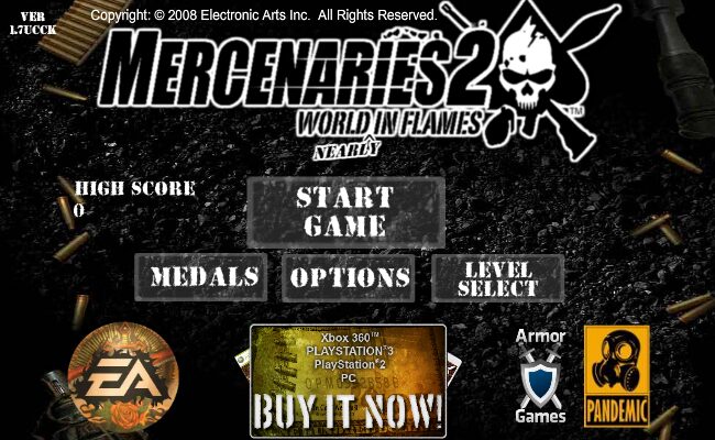 In summary, World Nearly in Flames is a polished, high-energy demo package that succeeds both as a standalone flash game and as a teaser for the console experience. Its blend of platforming, shooting, and strategic aiming makes it a worthwhile diversion for quick gaming sessions—and a compelling introduction to the wider Mercenaries universe.