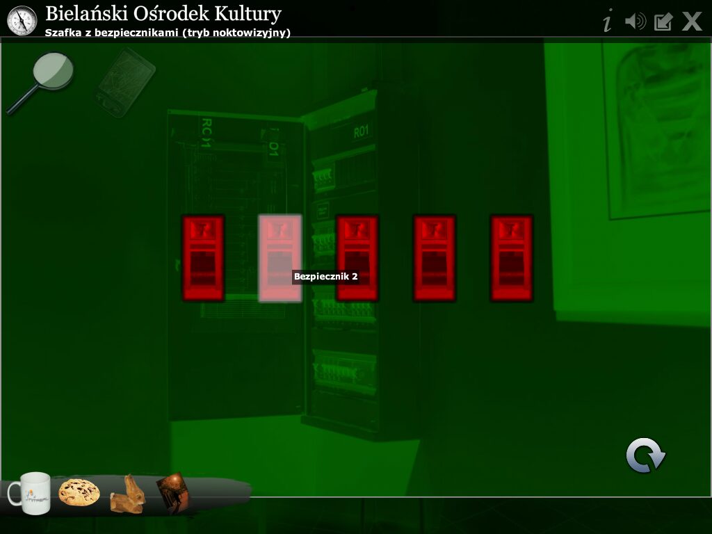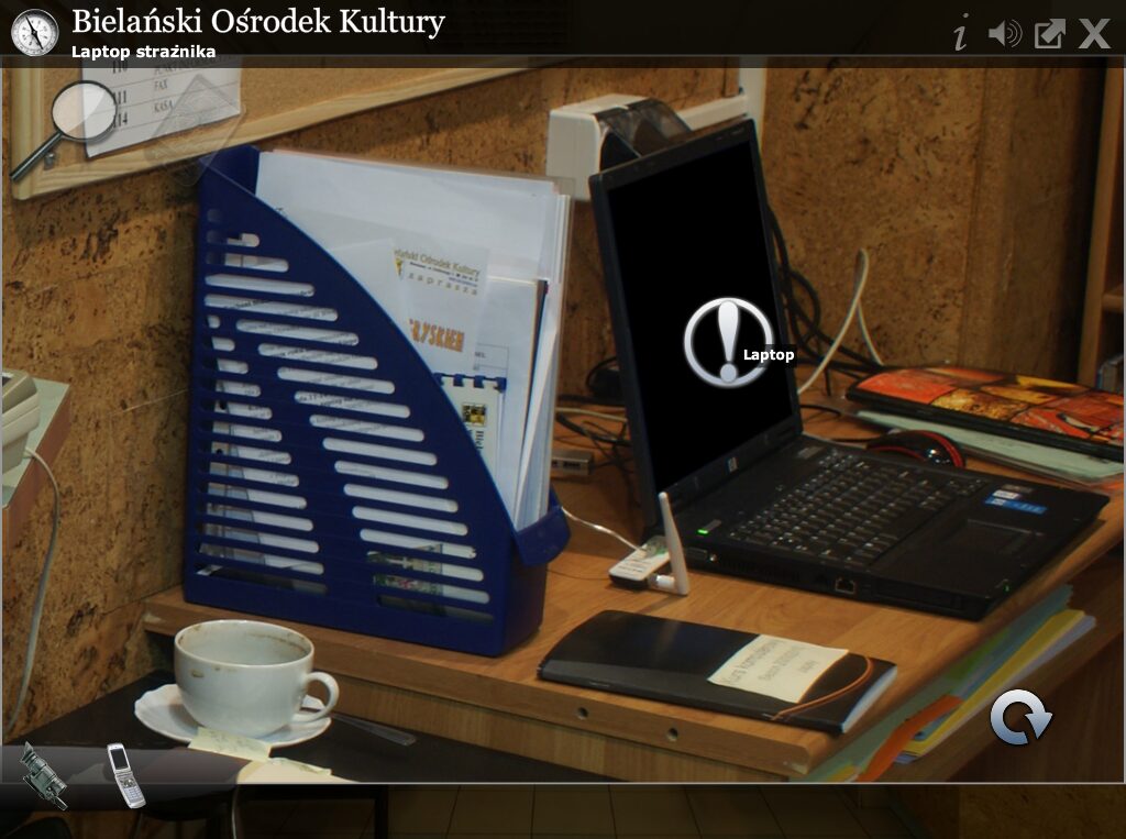 True to its adventure roots, Misja: Bielany Warszawskie features a versatile inventory system. Collected items appear in your inventory bar until you need to combine, use, or inspect them to solve puzzles. If you ever feel stuck, the magnifying glass icon in the top left offers contextual hints, while the “i” icon delivers educational insights about each location, blending gameplay with local history and trivia.