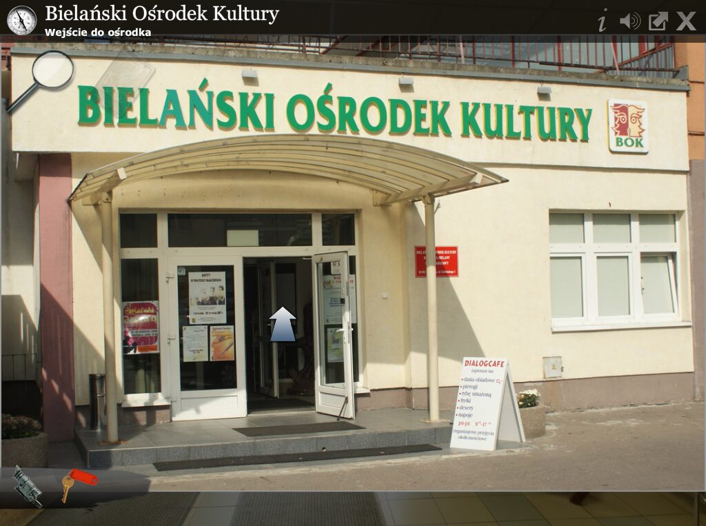 The core interaction revolves around full-screen panoramic photos of real-life Bielany landmarks. You can click and hold to drag your view around these environments, hunting for hotspots that reveal clues, items, or secret passages. When you discover a hotspot, a simple click zooms you in to examine details in high-resolution stills, giving every corner of the district a sense of depth and authenticity.