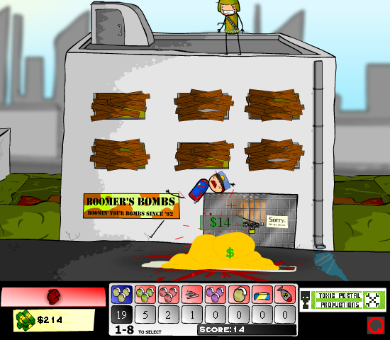 Nade Reborn puts you in control of Boomer, a Vietnam veteran who’s lost his grip on reality and now channels his anger through a makeshift bomb shop. The core loop revolves around positioning Boomer on rooftops and unleashing a cavalcade of explosives on unsuspecting passersby. With a simple combination of keyboard and mouse controls—numbers 1 through 8 to pick a grenade type and a click to drop—it’s easy to learn but hard to master.