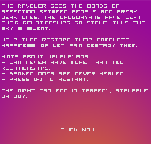 Night Raveler and the Heartbroken Uruguayans is a compact yet profoundly affecting browser title. Its short playtime (often under 15 minutes) belies the depth of emotion it can evoke. Whether you’re seeking a meditative detour or a poignant commentary on human connection, the game manages to deliver on both fronts in a seamless package.