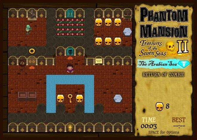 The moment you set sail into Phantom Mansion II: Treasures of the Seven Seas – The Arabian Sea, you’ll find yourself at the helm of Hector’s newest escapade. Using the arrow keys, you guide Hector from one chamber to the next inside an imposing pyramidal structure. Each room is a unique puzzle box: shifting blocks, pressure plates, and cleverly concealed switches test your wit and patience in equal measure.