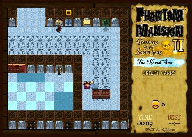 Phantom Mansion II: Treasures of the Seven Seas – The North Sea delivers a tightly designed puzzle experience that hinges on precise movement and keen observation. Players take control of Hector using the arrow keys, guiding him from chamber to chamber in search of the coveted golden treasure skulls. Each room introduces new obstacles, from sliding patches of ice to locked doors that demand exploration for matching keys.
