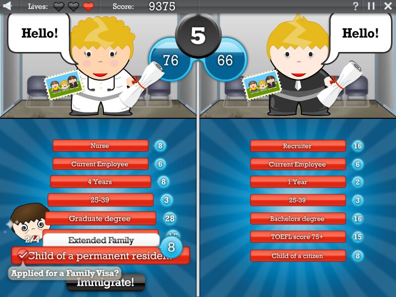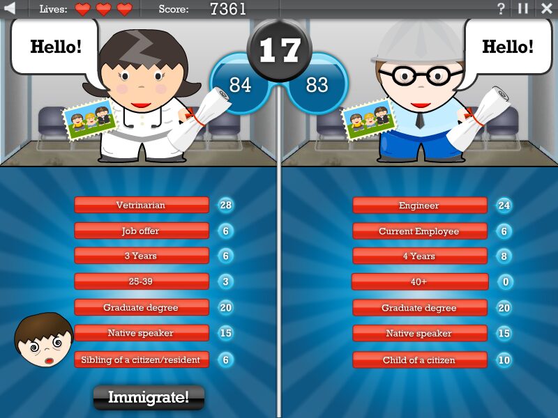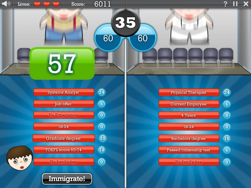 Points of Entry succeeds brilliantly as an educational newsgame: it’s engaging, informative, and surprisingly addictive. The blend of time pressure, strategic decision-making, and real-world policy mechanics creates a compelling loop that keeps you returning for “just one more round.” You’ll come away with a deeper understanding of how a point-based immigration system functions—and the trade-offs that such systems impose on individuals.