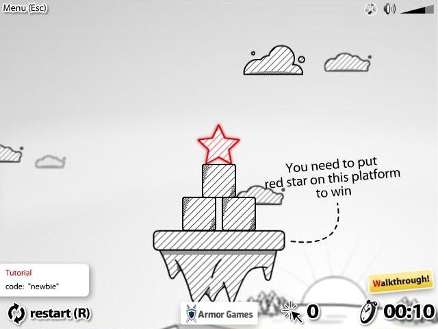 Redstar Fall delivers a deceptively simple premise that evolves into a richly challenging puzzle experience. Your primary goal is always to guide the titular red star safely to a shaded platform without letting it tumble off-screen. Early levels introduce you to shaded items—objects marked with diagonal lines—which you can click to remove. This mechanic feels intuitive at first, but as the puzzles progress, you’ll find yourself strategizing every single click to clear a path and control physics-based reactions.