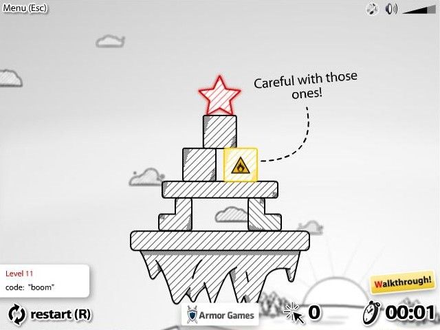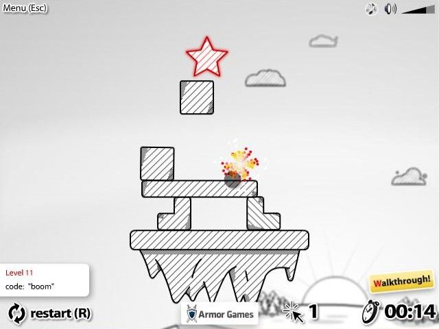 At level eleven, Redstar Fall introduces yellow boxes that explode if handled improperly. Whether clicked directly or struck from above, these volatile crates can instantly reset your progress. This explosive twist reinvigorates the core mechanics and keeps each level feeling fresh. The combination of time and clicks as scoring metrics further motivates you to refine your solutions, rewarding clean, efficient runs over frantic experimentation.