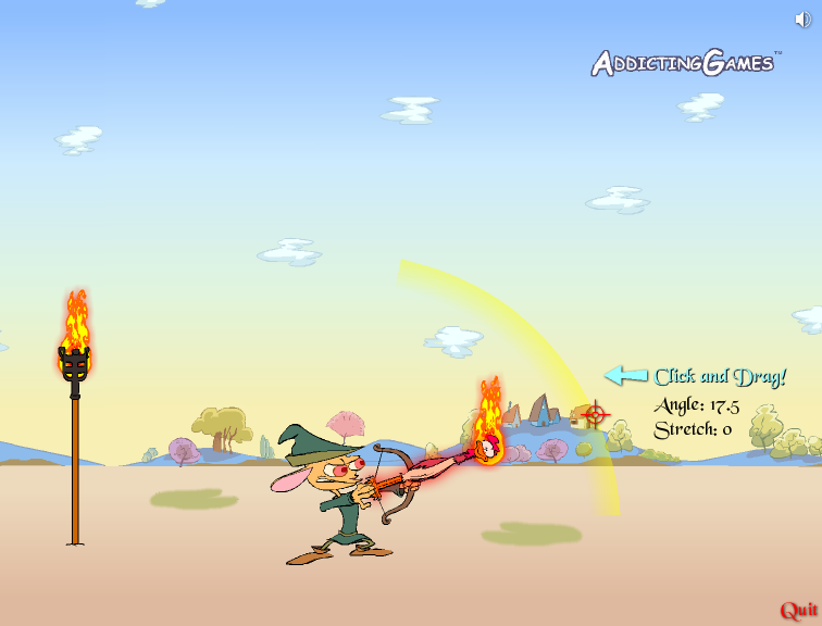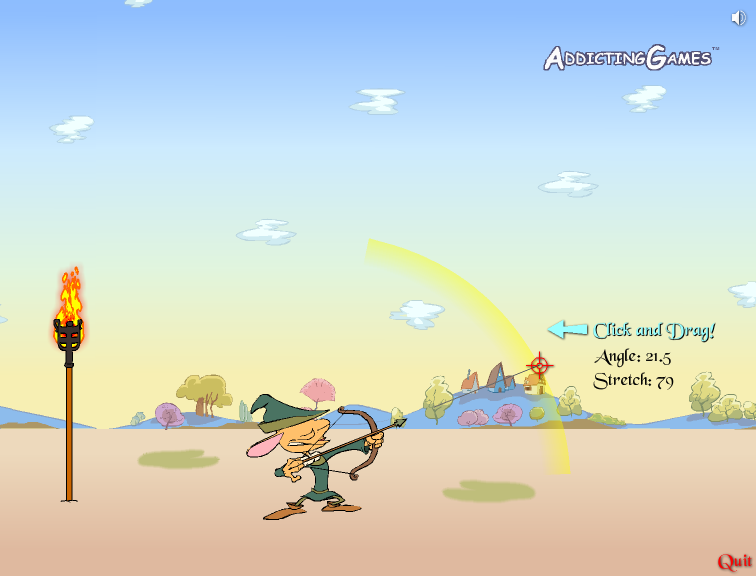 Ren & Stimpy in Robin Höek centers around a deceptively simple yet surprisingly deep archery mechanic. Players click and drag the mouse cursor to draw their bow, carefully aiming their shots at either Ren or Stimpy on opposite sides of the stage. The tension of pulling back the string is matched only by the tension of seeing your quiver slowly dwindle, making every arrow count.