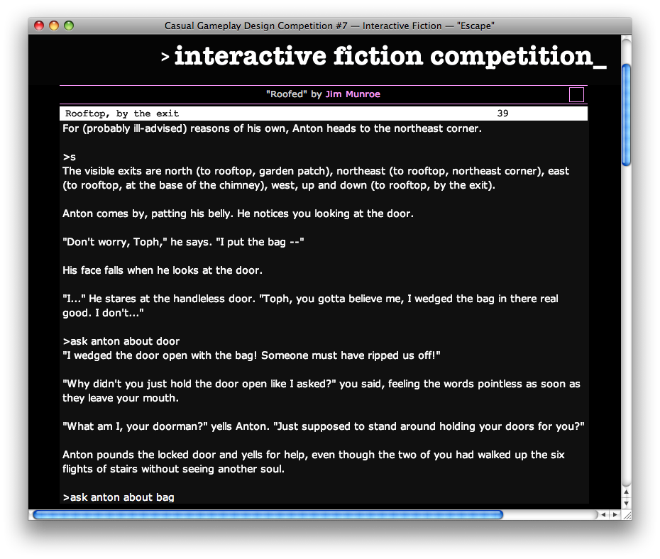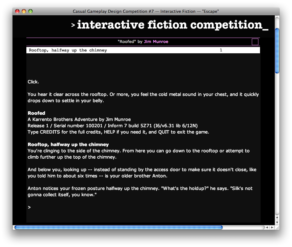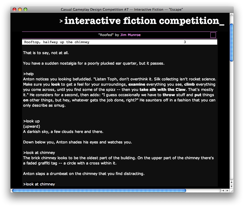While rooted in interactive fiction, Roofed surprises with stylized 2D illustrations that capture the oppressive scale of urban ruins. Each screen features hand-drawn backdrops of crumbling skyscraper interiors, festooned with webbing and dripping with atmospheric grime. These artful stills, punctuated by subtle parallax scrolling, lend a cinematic quality that nods to the game’s film-in-progress origins.