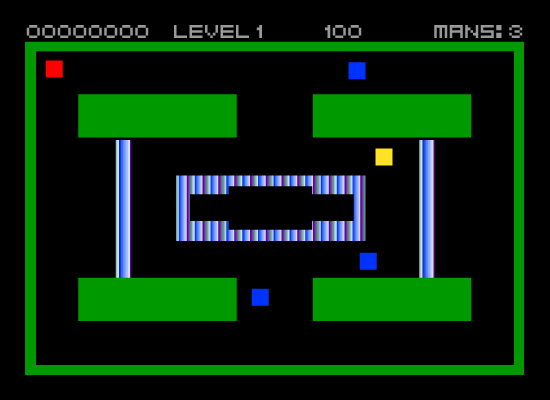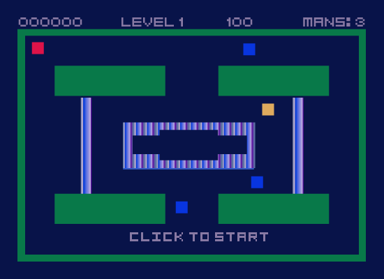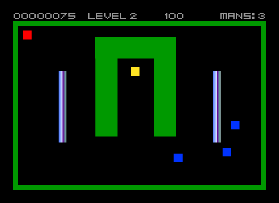 The challenge ramps up organically over the 16 levels, introducing new maze configurations, dead ends, and an increasing number of hazards. Blue-and-white bars litter the corridors, and mere contact with these obstacles costs a life. This “one-hit” punishment demands precision movement and split-second decision-making, turning even the simplest paths into nail-biting trials. As you progress, the design cleverly intersperses narrow passages requiring careful navigation with open areas that invite risk-reward maneuvers to snag bonus squares.