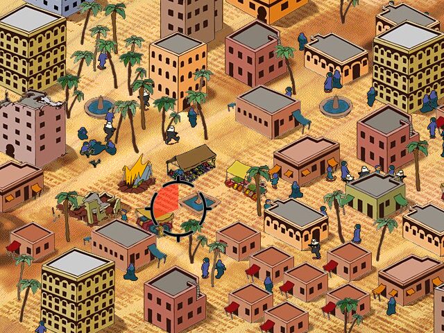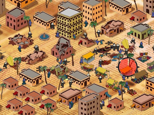 September 12th employs a deliberately austere visual style, using muted earth tones and minimalistic character models to evoke the dusty atmosphere of a war-torn market district. The isometric perspective provides a clear, strategic vantage point, allowing you to survey civilian clusters, hidden terrorists, and vulnerable buildings in equal measure. While the graphics are not cutting-edge, their simplicity underscores the game’s focus on message over spectacle.