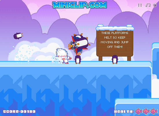 Character animations are thoughtfully executed. The yeti’s walk cycle is jaunty, and the sliding animation conveys smooth momentum, complete with ice-spark particles during high-speed runs. Enemies—from waddling penguins to more menacing arctic creatures—move with clear, readable patterns. When you dispatch a foe with a slide, a brief “ice shatter” effect underscores the impact, furnishing each successful attack with satisfying feedback.
