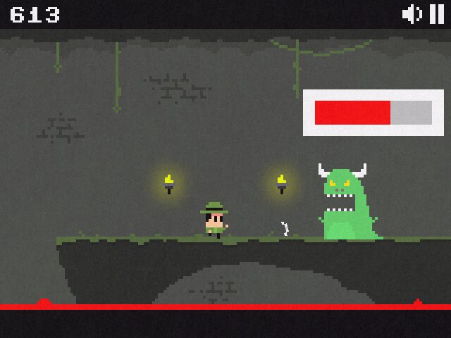 As you guide Bob screen by screen, you’ll encounter mechanics that twist familiar platforming conventions. Clicking can initiate a jump power gauge that launches Bob over lava pits, spikes, and rolling boulders, or it might send him climbing a rusted ladder to avoid subterranean horrors. Other moments see you steering a flying platform higher with well-timed taps, offering a refreshing change of pace every few rooms.
