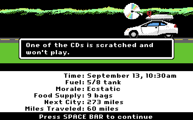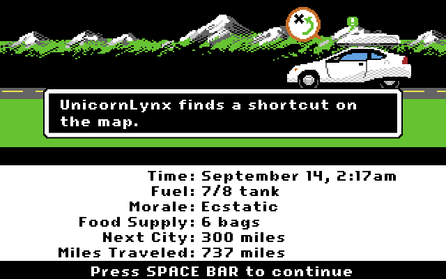 Character sprites are delightfully expressive: you can practically see boredom radiating off your road-weary friends when you choose to drive through the night without a break. Environmental hazards like sudden thunderstorms and pothole-filled highways are conveyed through quick sprite swaps and color flashes, creating a visceral sense of danger without overwhelming modern graphical fidelity.