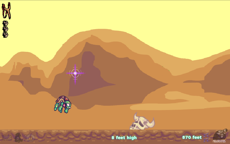 Adding layers to the basic launch is a limited-ammo projectile weapon and a one-use jet pack. The weapon lets you shoot the turtle upward at critical moments, giving you the chance to prolong the flight or reach high-value targets. The jet pack, though only available once per run, can save you from a premature crash or help you snag bonuses flying just out of reach. Learning when to deploy these tools becomes part of the strategic puzzle with each attempt.