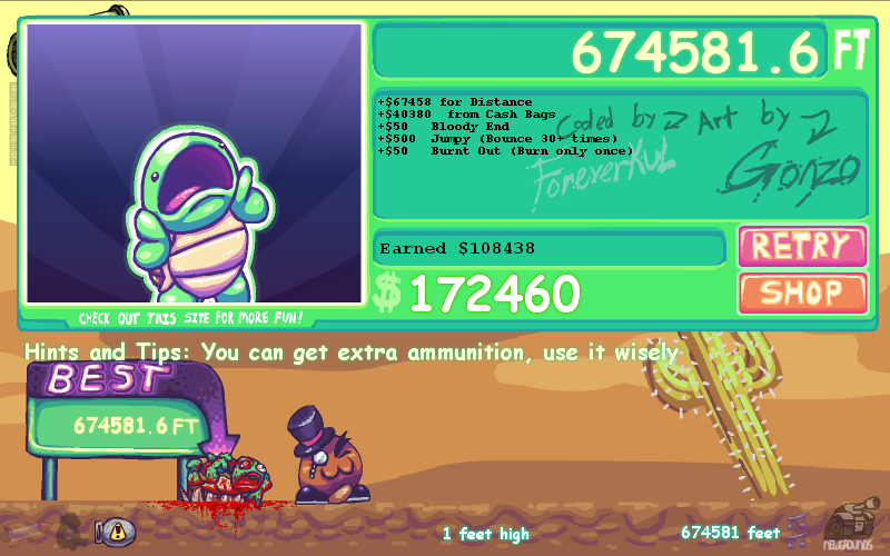 After every flight, you’re rewarded with in-game cash based on distance covered, items struck, and collectibles gathered. This currency fuels a satisfying upgrade loop: you can improve your cannon’s power, reload speed, and angle flexibility; boost your projectile weapon’s ammo and strength; or even enhance your jet pack’s thrust. As you unlock more powerful gear, the game opens up new opportunities for longer, more lucrative flights and keeps you hooked on that “just one more run” mentality.