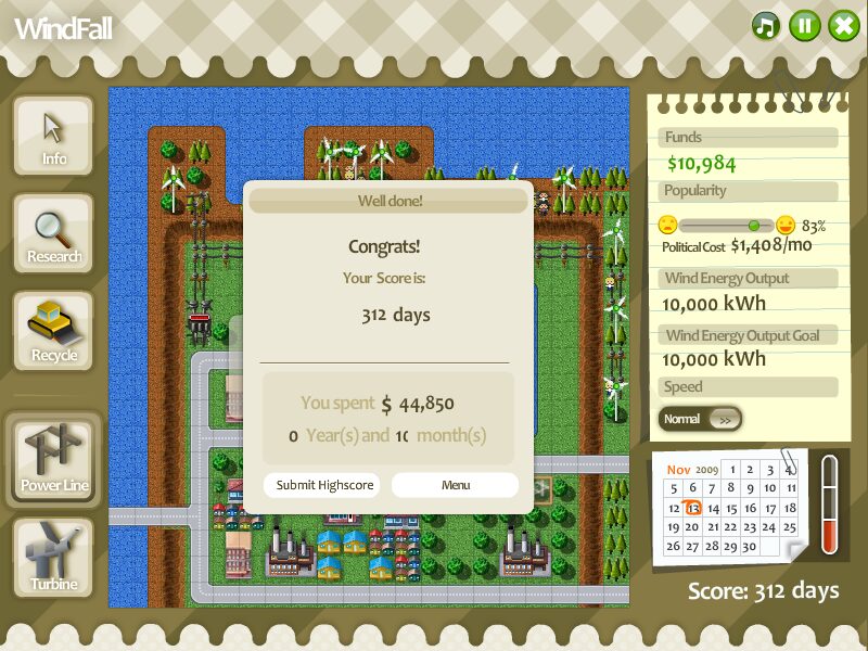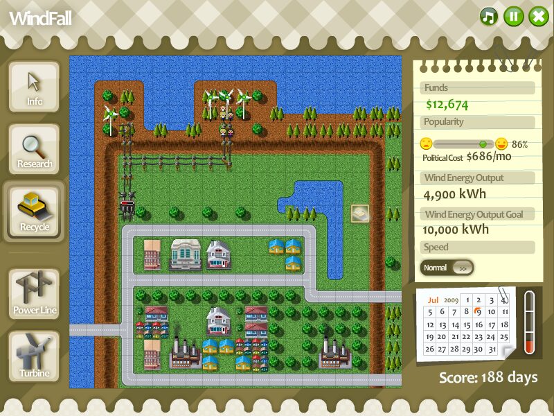 In sum, WindFall is an engaging and accessible simulation that highlights the complexities of renewable energy deployment. Its clean graphics, intuitive interface, and emergent storytelling make it a standout title for anyone interested in strategy, management, or environmental themes. If you’ve ever dreamed of powering a city with sustainable energy while navigating real-world politics, WindFall is well worth a spin.