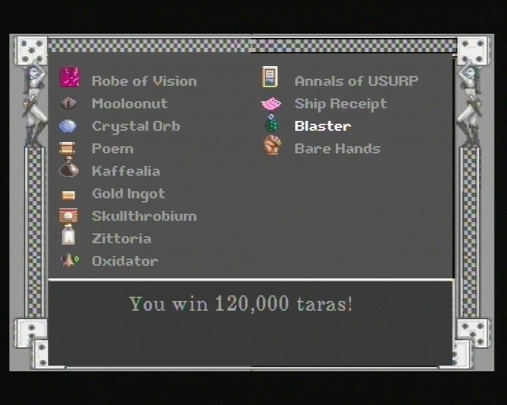 The narrative thrust of Laser Lords is delightfully off-beat: you’re a stranded desert hitchhiker who is spontaneously abducted by an intergalactic cruiser, then thrust into a universe-spanning quest to stop the ancient evil Sarpedon. The opening sequence manages to sell both the absurdity and the stakes, quickly establishing Sarpedon’s quest for a reality-bending crystal and your unlikely destiny to thwart him.