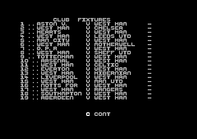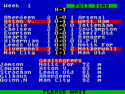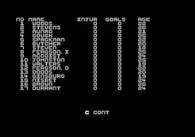 Given its roots on 64K/48K microcomputers, 2 Player Soccer Squad wisely embraces a minimalist visual style. The game relies on crisp text displays, simple line graphics, and color coding to distinguish teams and match events. While there are no lavish 3D cutscenes or animated stadiums, the stripped-back presentation is perfectly suited to the hardware and keeps the interface intuitive.