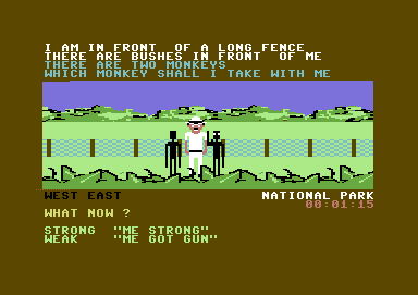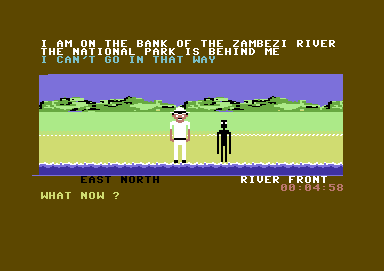 African Safari offers a refreshing blend of adventure and strategy mechanics as you step into the boots of Dr. Livingstone, an intrepid explorer with an unexpected handicap: a persistent bad back. Movement is handled through a joystick for fluid trekking across the savanna, while a combination of keyboard commands lets you interact with the environment and local wildlife. This dual-control scheme is intuitive and responsive, making navigation through dense foliage and wide-open plains equally engaging.