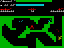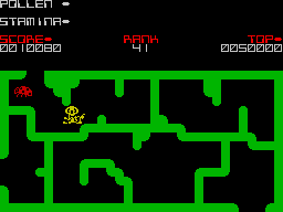 The action alternates between overhead and side-scrolling perspectives, providing a varied challenge in every screen. Above ground, you’ll choose between four initial entry points; below, you’ll tackle two access routes into the ant tunnels. Ants roam the side-view chambers with unpredictable patterns, and contact with them depletes Barnabee’s strength meter. Success hinges on your ability to anticipate their movements and slip past unnoticed.