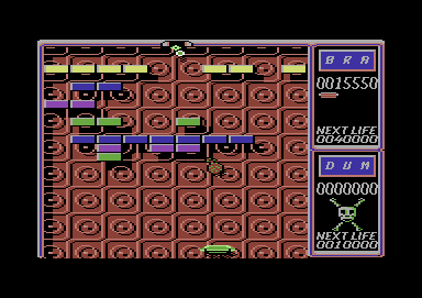 On top of the solo gauntlet, Batty features a two‐player mode that splits the screen vertically, giving each competitor their own half to defend. Whether you cooperate to clear bricks faster or turn it into a head‐to‐head survival challenge, the shared‐screen format injects fresh replay value. It’s rare to find a paddle‐and‐ball game on the Commodore 64 that feels so competitive, yet so cooperative, at the same time.