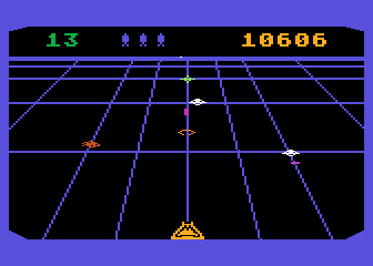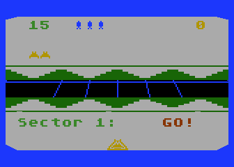 Add to that the recurring appearance of the rejuvenator—a floating power-up that grants an extra life if collected, but transforms into a hostile if shot—and you have a fast-paced risk/reward mechanic that keeps every encounter tense. As you progress through even-numbered sectors up to 16, new enemy types emerge to slow your advance, demanding swift reflexes and quick decision-making to maintain your beam-riding advantage.