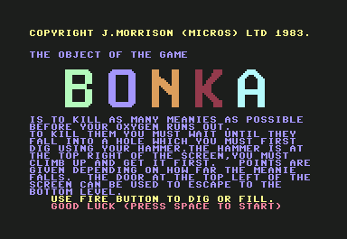 Bonka doesn’t weave an elaborate narrative; its story is mostly implied through the setting. You assume the role of a nameless miner on a distant space station plagued by hostile creatures called Meanies. The constant oxygen drain suggests a failing life support system, heightening the sense of urgency. While minimal, this premise is enough to frame each level as a desperate fight for survival.