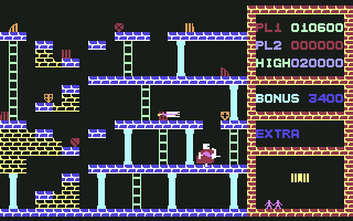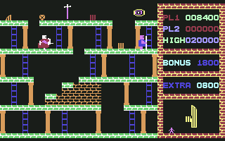Cavelon II builds on the original’s frantic puzzle-platform formula by challenging you to collect scattered door pieces under a relentless time limit. Each dungeon forces you to navigate multi‐tiered caverns, avoid patrolling knights and environmental hazards, and race against the clock before your remaining lives slip away. The introduction of ladders and higher platforms adds a new vertical dimension, requiring quick reflexes to plan efficient routes through winding corridors.
