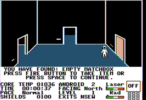 The heart of gameplay revolves around exploration and resource management. With over 2,000 interconnected rooms spread across eight levels, unchecked traversing isn’t an option. You must monitor vital readouts—core temperature, radiation levels, shield strength, and remaining mission time—all displayed in the lower HUD. Key items such as toolkits, medical packs, and defensive weapons must be scavenged wisely; each droid can hold only eight items at a time, forcing crucial decisions about what to carry forward and what to leave behind.
