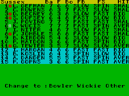 Cricket Captain on the Commodore 64 and ZX Spectrum strips away the direct ball-by-ball control found in other versions, instead presenting a high-level tactical simulation. You take charge of squad selection, batting orders and bowling changes, then watch the match unfold via a stripped-down presentation. The emphasis lies squarely on decision-making: choosing when to declare, rotating bowlers to exploit weaknesses, and adjusting field placements in response to the opposition’s strengths.