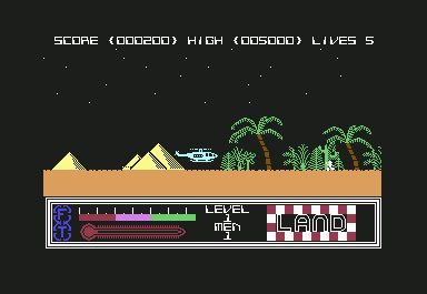 Animation is smooth and purposeful: rockets arch realistically, rotor blades spin at varying speeds, and rescued comrades cling to the skids in a delightfully crude yet effective bit of sprite work. Explosions are chunky and satisfying, with debris puffing into the sky and craters left behind—a small touch that reinforces the impact of your strikes. Enemy aircraft roll and bank rather than snapping around, which not only looks better but also helps you anticipate incoming threats.