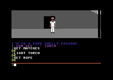 From the moment you arrive at Count Dracula’s foreboding mansion, Drak puts you in control of a tense, puzzle-driven adventure. Maneuvering your character with the joystick feels intuitive, and the addition of two-word command input offers an extra layer of engagement. Typing “OPEN DOOR” or its abbreviated form “OP DO” is satisfying, especially when a carefully considered command yields progress in the game’s labyrinthine hallways.