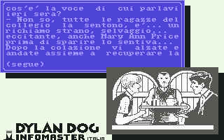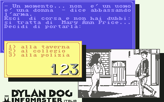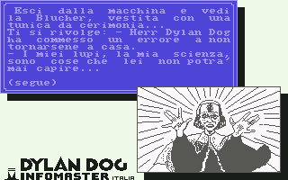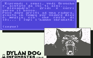 Dylan Dog: Le Notti della Luna Piena follows a classic interactive-fiction structure, where each scene is introduced by descriptive text and accompanied by a striking comic-style illustration. You read through narrative passages, examine detailed images, and then choose from two or three possible actions to advance the plot. This simple yet effective choice-driven mechanic ensures that every decision—whether to knock on a door, search the woods, or question a suspect—carries weight and can lead to vastly different outcomes.