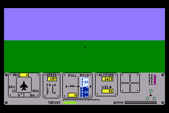 Despite its focus on simulation depth, Fighter Pilot doesn’t skimp on visual fidelity. The terrain over its 15,000 square-mile play area renders at a respectable level of detail for its era, with rolling hills, coastal zones, and sprawling plains that help orient you as you navigate. Ground textures vary from desert sands to forested regions, lending visual variety that keeps each mission visually engaging.
