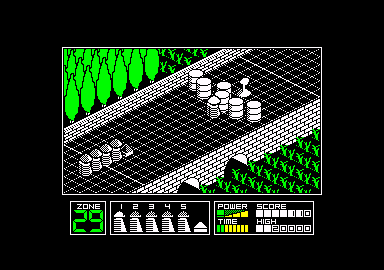 Highway Encounter offers a uniquely cerebral spin on the action-strategy genre by placing you in control of a Vorton droid whose sole mission is to shepherd a volatile bomb along a hazardous highway toward an alien stronghold. Each of the 30 screens is a puzzle in its own right, demanding careful timing, precision movement, and a keen awareness of how obstacles interact. The presence of rolling barrels, concealed mines, and patrolling alien sentries means that a single misstep can send you back to the start of a level or, worse, eliminate one of your precious extra lives.