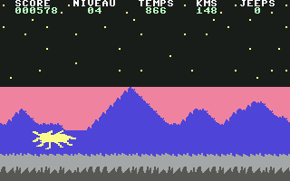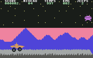 Jeep offers a fast-paced, arcade-style experience that keeps you constantly on your toes. As the pilot of a lunar jeep, you must traverse 900 kilometers of treacherous terrain, balancing speed and precision to evade crevices and leap over massive boulders. With only 999 units of time on the clock, the game encourages you to push the accelerator to its limits while maintaining enough control to avoid fatal collisions.