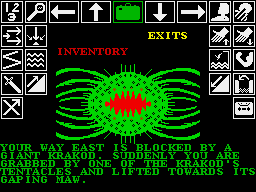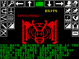 Kobyashi Naru presents a distinctive adventure format that diverges from the classic 1980s text-parser model. Instead of typing commands, you interact with on-screen icons laid out in the top half of the display. These icons handle everything from movement and item manipulation to specialised actions like ascending, throwing, and swimming. Selecting the “analyse” icon and then clicking on specific words in the scene text becomes a crucial tool for uncovering hidden clues.