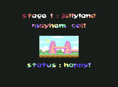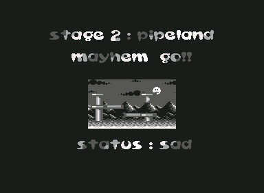 For a cartridge-era platformer, Mayhem in Monsterland punches above its weight in visual charm. The “unhappy” mode features muted palettes and sparse backgrounds, effectively communicating a grey, somber atmosphere. Once you transform the level to “happy” mode, vibrant colors flood the screen, giving life to once-dreary landscapes and turning foes into friendly, bouncing creatures.