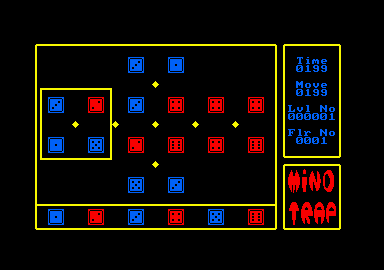 The primary mechanic revolves around a crosshair that covers four blocks at a time. By holding down the fire button and pushing left or right, you can rotate these blocks through four positions in sequence. Mastery of this control scheme is essential, as you’ll often need to execute precise rotations under pressure. The tactile feel of manipulating a quartet of blocks at once gives Mindtrap a distinctive physicality that sets it apart from more traditional sliding-block games.
