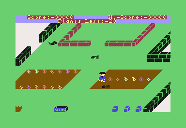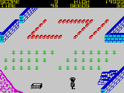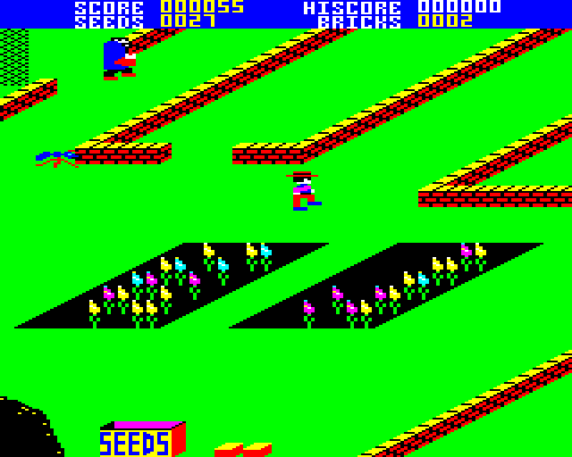Resource management plays a heavy role: every flower eaten forces you to plant a seed, then wait for it to sprout. Seeds are a finite commodity, and the Tramp character constantly prowls the garden edges, hoping to swipe your stock. This creates a constant undercurrent of tension—should you dash out to complete your barrier, or stand guard to protect your seeds?