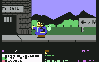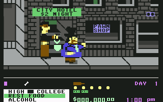 Balancing short-term needs against long-term goals is at the core of the experience. Do you rest on a park bench and risk being arrested for loitering? Or push yourself to deliver one more pizza order? The day-night cycle forces you to plan: some jobs only appear during business hours, while certain lucrative begging spots are best at night. This blend of strategy and survival makes each playthrough feel tense and rewarding.