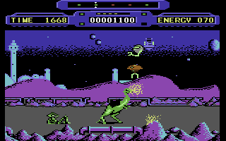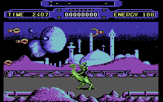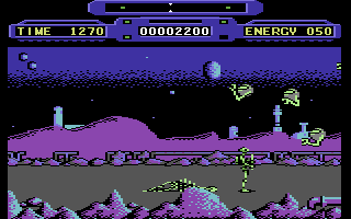 Visually, Rimrunner embraces a dark sci-fi palette punctuated by neon energy glows and vibrant insectoid designs. The alien landscapes—ranging from crystalline caverns to rust-colored fortress worlds—feel distinct, each backdrop rendered with rich detail. Parallax scrolling adds depth as foreground foliage and distant spires drift by, creating the impression of a vast, hostile galaxy.