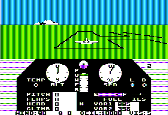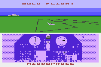 Although Solo Flight’s visuals are modest by modern standards, they serve the simulation perfectly. The cockpit view presents clear, easy-to-read instrument dials for airspeed, altitude, heading, and vertical speed. VOR needles and glide slope indicators are crisp and intuitive, making instrument-only flying a satisfying puzzle rather than an exercise in frustration.