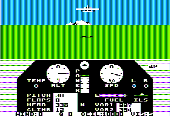 Weather effects—ranging from clear skies to dense cloud layers—are conveyed through smooth transitions and appropriate cockpit instrument shading. While there’s no high-definition terrain or texture detail, the graphical style enhances immersion by focusing on the essential elements a pilot needs. In this sense, Solo Flight’s graphics aren’t flashy but are highly functional and supportive of the core simulation.
