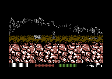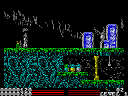 A standout feature appears in the Amstrad version when run on the Amstrad Plus: a silhouetted backdrop reminiscent of the Commodore 64 release, making it a unique cassette-based title in the UK to support that hardware. These layered silhouettes add depth to otherwise flat screens, lending the game a cinematic quality and setting it apart from competing budget releases.